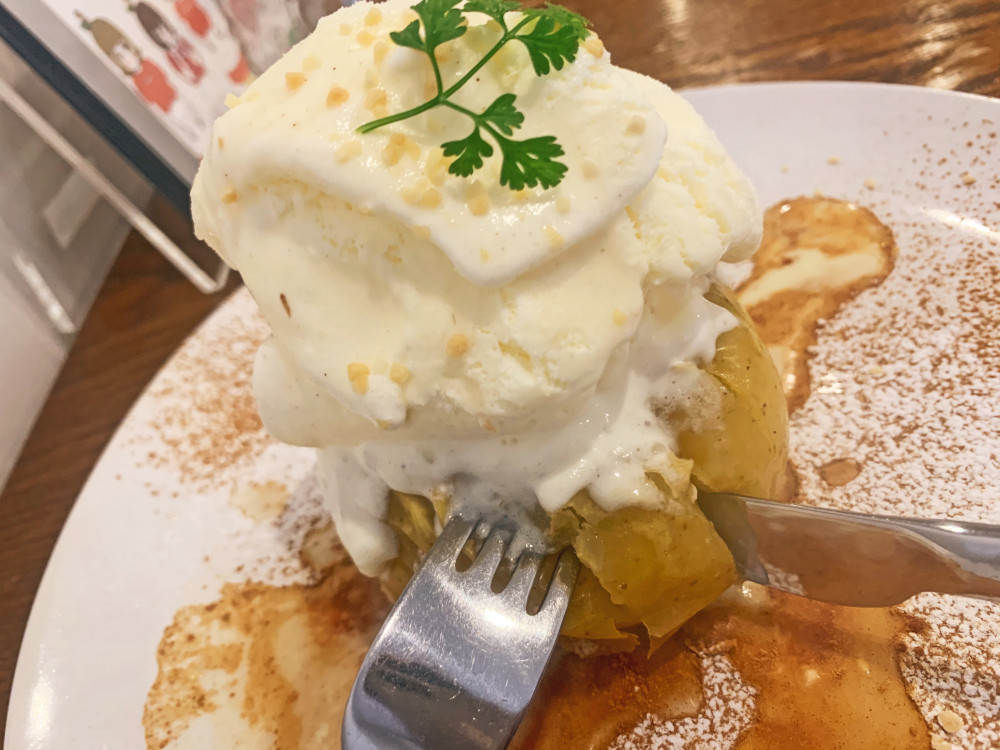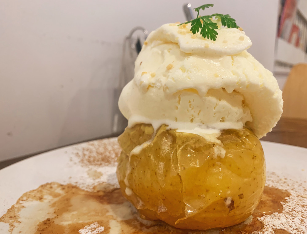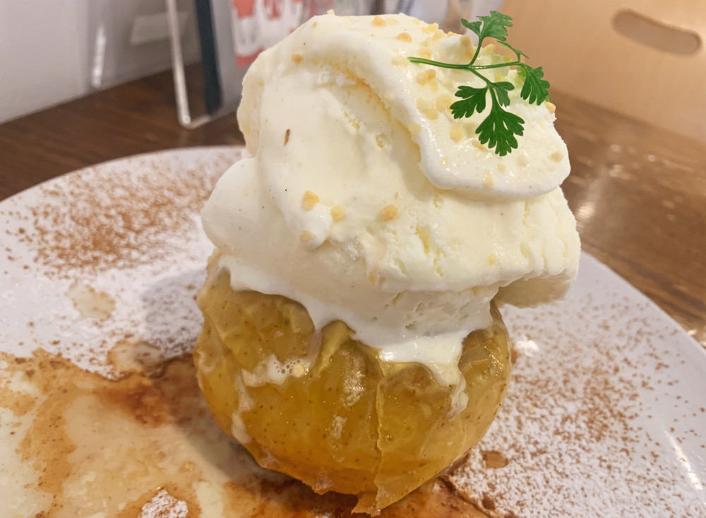 リンゴを丸ごと使った焼きリンゴを食べられるカフェ。