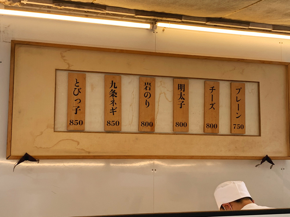プレーン以外にも種類が豊富でチーズや明太子、岩のり、九条ネギ、とびっ子等があります。