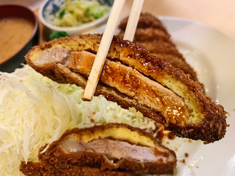 職人が丁寧にトンカツを揚げるジューシーな音が響き渡り、食欲を抑えきれなくなります!